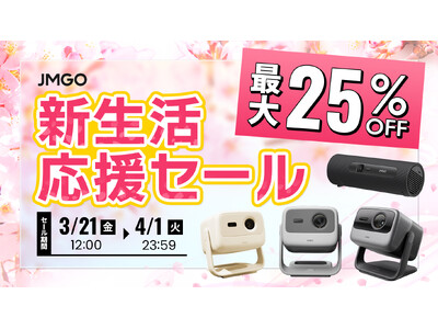 家庭用プロジェクターブランド「JMGO(ジェイエムゴー)」は、春の新生活シーズンに合わせ、2025年3月21日(金)12:00~4月1日(火)23:59の期間限定で、Amazonスマイルセールにて最大25%OFFの「春の新生活応援セール」を開催いたします。