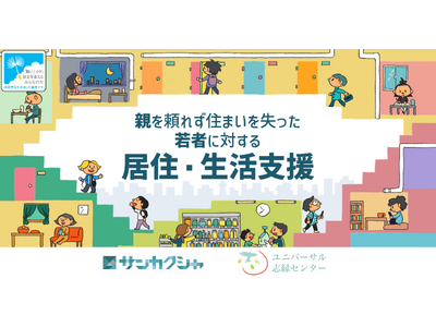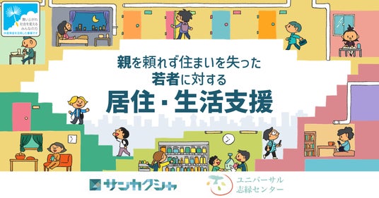 特定非営利活動法人サンカクシャと公益社団法人ユニバーサル志縁センターが休眠預金等活用法助成による資金分配団体に採択され、親を頼れず住まいを失った若者への居住・生活支援に取り組む実行団体の公募を開始。