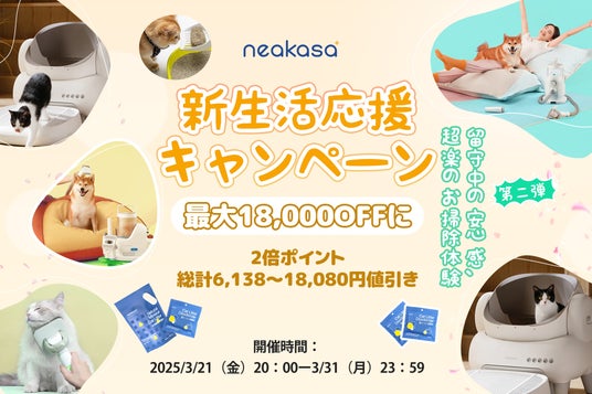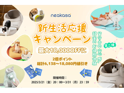 春の訪れとともに始まる「換毛期対策」を完全サポート!NEAKASA公式サイトでは3月21日~3月31日の期間限定で、大人気グルーミングシリーズを中心に最大39%OFF&ポイント2倍の特別キャンペーンを実施します。