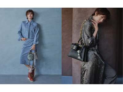 本編では、米倉涼子さんが「ピーカブー」に合わせた2つのスタイルを披露しています。1つ目は、デニムのセットアップに、アメリカのフットウェアブランド、「レッドウィング(Red Wing)」との共同制作による「フェンディ アンド レッドウィング(FENDI and RED WING)」ブーツを合わせたコーディネート。ダヴカラーの「ピーカブー ミニ(Peekaboo Mini)」に「ピーカブー」専用のハンドルと「FF」ロゴモチーフが施された「ストラップ ユー(Strap You)」、パイナップル型のチャームを取り付け、エレガントで軽やかなスタイルを完成させました。2つ目は、春らしいピンクカラーのジャガードニットにブラウンのテーラードパンツを合わせ、フローラルブーケの モチーフが施されたロングコートを羽織ったコーディネート。ブラックのアイコニックな「ピーカブー アイシーユー スモール(Peekaboo ISeeU Small)」に「ナノ バゲット(Nano Baguette)」、「フェンディ ソースイート チャーム(FENDI So Sweet Charm)」、「FF ダイアモンド(FF DIAMOND)」モチーフがあしらわれた「ストラップ ユー」を取り付け、遊び心のある大人なスタイルを披露しました。