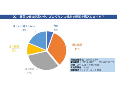 野菜人.com)を運営する合同会社efu(本社:東京都中央区)は、全国の男女2,406名を対象に、「野菜の価格と購入意識に関するアンケート調査」を実施しました。