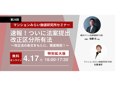 『速報!ついに法案提出 改正区分所有法 ~改正法の条文をもとに、徹底解説!~』を、2025年4月17日(木)に配信いたします。