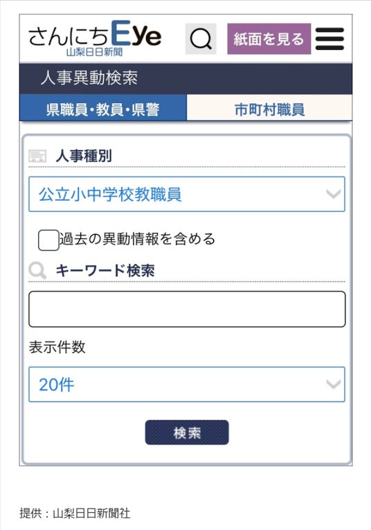 山梨日日新聞デジタル「さんにちEye」は、山梨県内の県職員や市町村職員、小中高校の先生らの人事異動情報を速報しています。