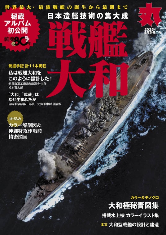 産経新聞グループの潮書房光人新社は、月刊『丸』5月別冊号「戦艦大和」(定価2380円)を発売しました。1945年4月7日の沖縄特攻作戦での沈没から今年で80年。日本造艦技術の集大成で、日本海軍の象徴でもある巨大戦艦のメカニズムと戦歴を解き明かします。設計・建造関係者や乗組員の手記11本を発掘収録。グラビアは「大和」飛行科の秘蔵アルバムを初公開します。大和ミュージアムの特選写真も掲載。鎮魂の一冊にふさわしい内容になっています。