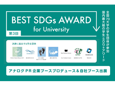 「企業の情報と印象をデザインする」をコンセプトに掲げ、メディアとWEBとオフラインを融合させたマーケティング戦略を提供する、株式会社アナログPR(本社:東京都港区、代表取締役:松浦啓介)は、2025年2月25日(火)にトンネル東京(セガサミーホールディングス株式会社本社)で開催された「第3回 BEST SDGs AWARD for University」にて、企業ブースをプロデュースし、自社ブースを出展したことをお知らせいたします。