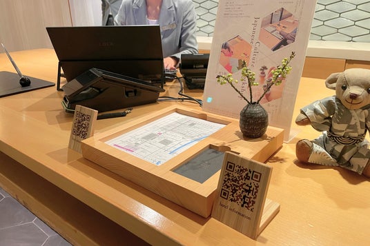 京都発の竹割り箸アップサイクルメーカー、株式会社TerrUPがホテル カンラ 京都 と共同開発したQRコードを照射した館内案内のPOPが全68室とフロントロビーに導入されました。