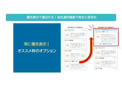 HowMaの売り反響獲得システムにおいて、売主が不動産査定を依頼する「会社選択画面」に上位表示ができる”オススメ枠”のオプションが追加されました。