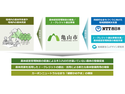 西日本電信電話株式会社 三重支店(支店長:佐藤 麻希 以下、NTT西日本三重支店)および株式会社地域創生Coデザイン研究所(代表取締役所長:北山 泰三 以下、地域創生Coデザイン研究所)は、三重県亀山市(市長:櫻井 義之 以下、亀山市)の国内でも先進的な取り組みとなる、「亀山市における森林経営管理制度の推進に向けたJ-クレジット創出事業」を支援することとなりました。