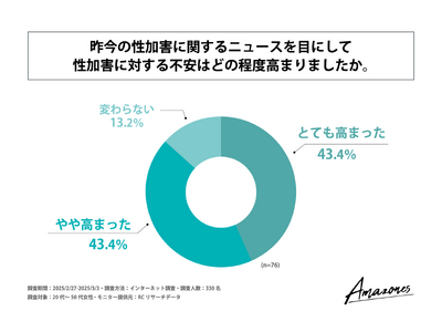 日常生活の中で性加害に対する不安を感じることがある女性の85%以上が、昨今の性加害に関するニュースを目にして性加害に対する不安が高まったと感じている
