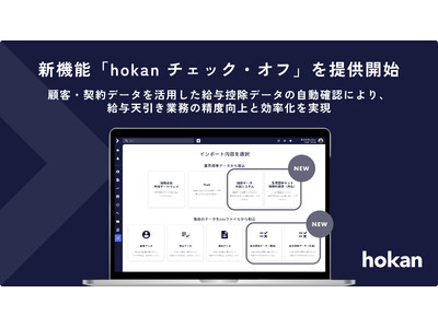 「適正な営業活動」と「組織の強固な監査体制」を実現するクラウド型保険代理店システム「hokan(R)︎」を提供する株式会社hokan(ホカン、本社:東京都中央区、代表取締役共同社長:小坂直之、横塚出、以下:当社)は、2025年3月より、団体向け保険の保険料を給与天引きする際の業務を効率化する新機能「hokan チェック・オフ」をリリースしました。本機能により、保険代理店における給与控除業務に伴うデータ処理を「hokan(R)︎」内で完結させることが可能となり、ミス防止と大幅なコスト削減、業務効率化・生産性向上を実現します。
