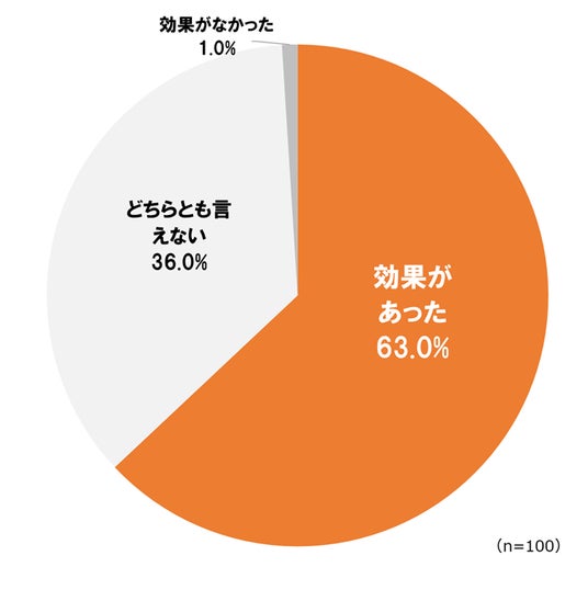 「効果があった」が63.0%、「どちらとも言えない」は36.0%、「効果がなかった」は1.0%いう結果になりました。