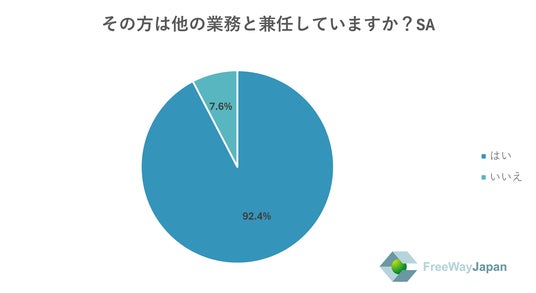 Q5で「はい」と回答した方に、その方は他の業務と兼任しているか聞いたところ、「はい」が92.4%、「いいえ」が7.6%という結果だった。