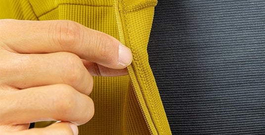 レイヤリング時に嵩張らず薄く仕上がるTPS縫製を採用