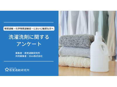 株式会社クリスタルロード(東京都中央区、代表取締役:加藤 路瑛)が運営する感覚過敏研究所は、Shin株式会社(静岡県浜松市、代表取締役:小畑伸次郎)と共同で、嗅覚過敏・化学物質過敏症の方を対象にした洗濯洗剤に関するアンケートを実施いたします。