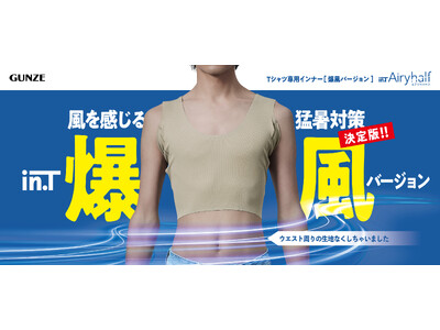 グンゼ株式会社(本社:大阪市北区、社長:佐口 敏康)は、2019年のデビュー以来、シリーズ累計130万枚を超えるヒットシリーズ「Tシャツ専用インナー in.T(インティー)」から、猛暑対策バージョン「in.T Airy half(エアリーハーフ)」を新発売いたします。“Tシャツ専用”として毎年支持を拡大する多彩なギミックに加え、 真夏のニーズ「涼しさ」を追求し、持続的にウエスト周りに風を感じられるよう生地を約半分にカットした革新的な デザインを開発しました。3月26日より販売を開始いたします。