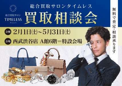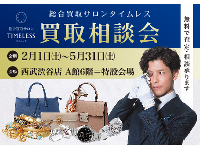 総合リユースサービス(オークション・総合買取サロン・古物商プラットフォーム)を展開する、株式会社タイムレス(本社:東京都港区、代表取締役社長:馬場 浩太)は、「総合買取サロン タイムレス 買取相談会」を西武渋谷店にて開催しております。開催期間は2025年2月1日(土)~5月31日(土)です。