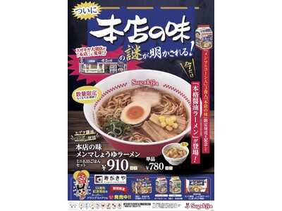 スガキコシステムズ株式会社では、2025年4月10日(木)よりスガキヤ全店で本格醤油ラーメン「本店の味 メンマしょうゆラーメン」を販売いたします。また、期間限定で「スガキヤ大須店」が本店の味ポップアップ店舗に大変身いたします。