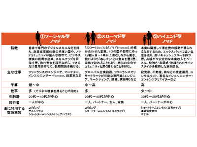 - 本レポートにおいて、デジタルノマドの特徴的なタイプを以下3分類に整理。一般的に1.をイメージするが、潜在ニーズとしては2.3.のポテンシャルも高い