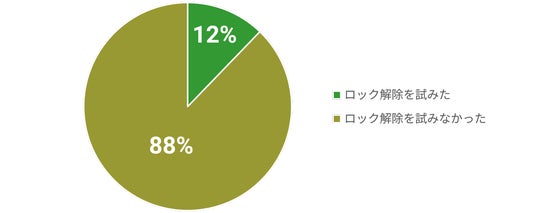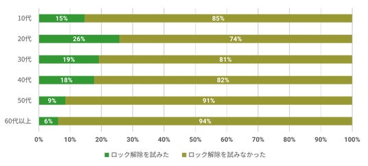 なお、年代別に見ると「ロック解除を試みた割合」自体は20代(26%)が最も高いものの、親族が亡くなるケースが他の年代より少ないため、試行者全体の中での構成比では下位(15%)となっています。また、試行率は50代を境に低下しており、これは亡くなった方の世代におけるスマートフォン保有率の低さが影響していると考えられます。