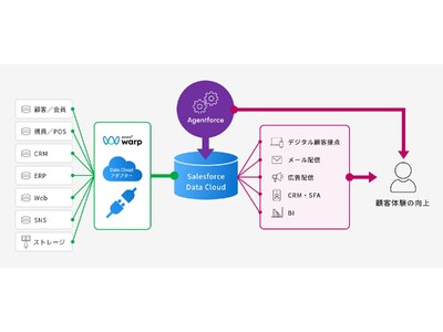 カスタマーデータプラットフォーム(CDP)市場は急速に拡大しており、企業のデータ活用戦略において中核的な役割を担っ ています。Salesforce が提供するデータプラットフォーム「Data Cloud」は、従来の CDP が主にマーケティング部門での活用に 留まっていたことに比し、営業や管理部門など幅広い部門での利活用にも対応していることから、企業での重要性やニーズが高 まっています。 しかし、多くの CDP ソリューションでは、データ連携インターフェース(I/F)の構築に高度な専門知識と多額の投資が必要で あり、企業にとって導入の大きな障壁となっていました。そこで、Warp のマスターパートナーである SI&C は「Data Cloud アダプ ター」を新たに開発し、Warp を介して 100 種類以上のシステムやサービスをプログラミングの知識やスキルを必要としない“ノー コード”での連携を実現させました。この度の Data Cloud アダプターの導入により、ユーザー企業が持つ情報資産の有効活用 の促進に貢献してまいります。