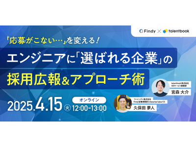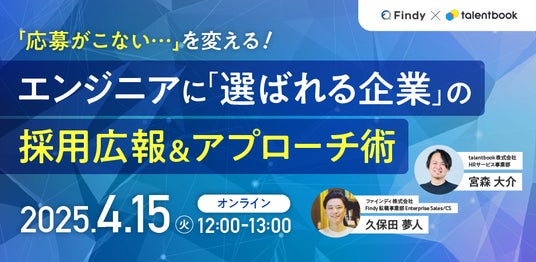 就活・転職活動に役立つキャリア学習サイト「talentbook」及び、法人向け採用マーケティング支援サービスを提供するtalentbook株式会社(本社:東京都渋谷区、共同代表取締役:大堀航・大堀海 以下、当社)は、2025年4月15日(火)にファインディ株式会社 久保田 夢人氏をお招きし「エンジニア採用」をテーマとしたオンラインイベントを開催いたします。