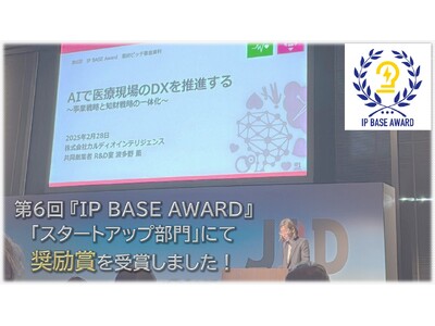 株式会社カルディオインテリジェンス(本社:東京都港区、代表取締役:田村雄一 以下、当社)は、特許庁が主催する「第6回IP BASE AWARD」のスタートアップ部門において、奨励賞を受賞いたしました。2025年2月28日に実施されたファイナルピッチ審査では、知財担当の波多野が登壇し、当社の知財戦略・活動について発表いたしました。