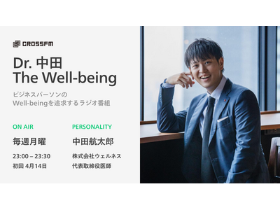 専属医師によるパーソナライズ予防ケアサービス「Wellness Membership」を提供する株式会社ウェルネス(東京都千代田区、代表取締役医師:中田航太郎、以下:当社)は、代表中田が、CROSS FMにてレギュラー番組「Dr.中田 The Well-being」をスタートすることをお知らせします。