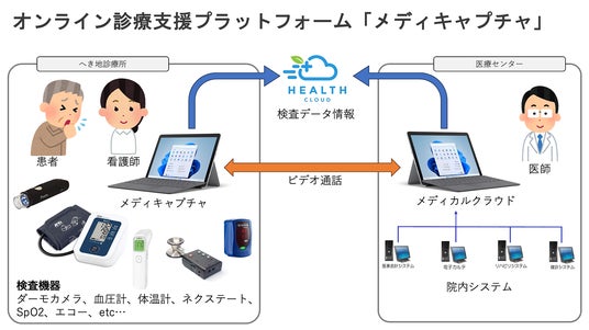 今回の取り組みでは、当社が提供するオンライン診療支援プラットフォーム「メディキャプチャ」を採用し、医師がオンラインで無医地区等にお住いの患者様へ迅速かつ高品質な診療を行える体制を整備しました。