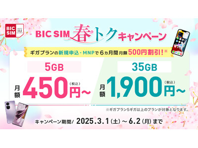 ビックカメラグループの格安SIMである「BIC SIM powered by IIJ(以下、BIC SIM)」は、2025年3月1日から実施している「BIC SIM春トクキャンペーン」をご好評につき6月2日まで延長いたします。