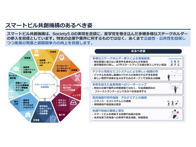 スマートビル共創機構の会員は、分野・業界の垣根を超え、スマートビルに関連する様々な知見や機能・技術を持った企業・団体からなる産学官連携で構成される予定です。