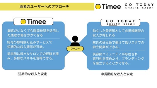 美容師のキャリア発展に寄与する点で共通しています。個々の美容師のキャリアゴールや働き方の希望に応じて、美容師がサービスを選択でき、ライフステージに合わせて両サービスを利用してもらえるような世界が実現すると良いと考えます。