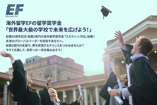世界110超の国・地域で海外留学や語学教育事業などを展開する世界最大級の教育機関イー・エフ・エデュケーション・ファースト(日本法人:イー・エフ・エデュケーション・ファースト・ジャパン株式会社〈本社:東京都渋谷区、代表取締役社長:リーナス・ジョンソン〉以下「EF」)は本年、創業から60年を迎えました。言語教育を通じて、国境や文化を越える橋を世界に架けることをミッションに広げてきた活動の節目を記念し、海外留学奨学金制度「スカラシップ60」を創設しています。総額1億円(返済不要)の留学奨学金を提供し、若者の海外留学を支援するスカラシップ60を通して、各国で活躍するグローバルリーダーの育成支援に貢献していきます。