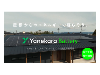 分散型電源で「21世紀の黒部ダム」を構築する株式会社Yanekaraは、工事不要で設置できる家庭用蓄電池「Yanekaraバッテリー」の先行予約の受付を開始いたします。先行予約をしていただいたお客様限定で定価の20% OFF、19.8万円で販売いたします。
