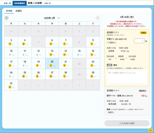 これまで手作業やExcel管理で煩雑になりがちだった「日々の収集数量の報告」や「月次の請求作業」が、