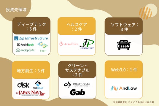 スパークル株式会社(所在地:宮城県仙台市、代表取締役:福留秀基、以下「当社」)は、運用中のファンドから2024年度中に計16件の投資を実施しました。
