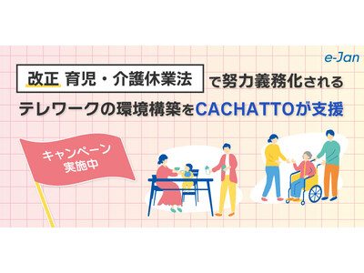 法人向けリモートアクセスサービス「CACHATTO(カチャット)」を開発・提供するe-Janネットワークス株式会社(本社:東京都千代田区、代表取締役:坂本史郎)は、テレワークプラットフォーム「CACHATTO」シリーズにより、令和7年4月1日から段階的に施行される「改正 育児・介護休業法」において努力義務化されるテレワークの環境構築を支援するキャンペーンを実施致します。