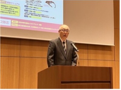 大野氏は本事業の概要紹介に続き、参画いただいた西鉄グループ会社6社での取り組み内容を報告しました。また、この事業の特長として、障がい者と企業側の意思疎通と実践工程がスムーズに行われるよう、業務マニュアルの作成や事前トレーニングを実施したことを報告いたしました。