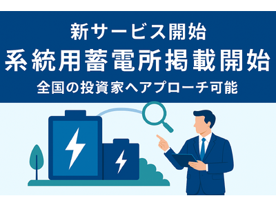 ~新たな投資対象として注目される「系統用蓄電所」の売買を支援 販売希望事業者と投資家のマッチングを通じ、再エネ市場の拡大に貢献~