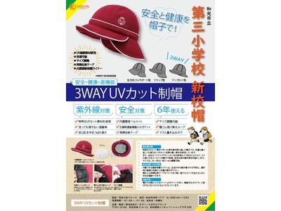紫外線対策をベースに、熱中症対策、そして通学時のケガや防災も考えた帽子が埼玉県和光市の第三小学校で採用。
