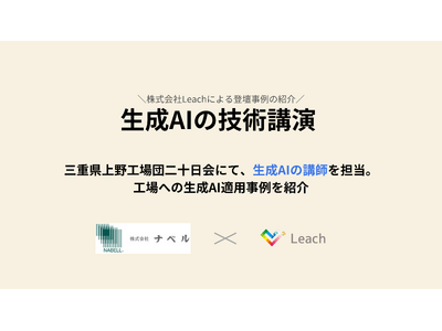 株式会社Leach(本社:東京都港区、代表取締役 冨永 拓也)は、株式会社ナベル(三重県伊賀市、代表取締役社長 永井 規夫)永井良知 取締役のご紹介により、三重県上野工場団二十日会の例会にて生成AI(Generative AI)の講師を務めました。工場DXの最前線におけるAI活用事例を紹介し、参加者の皆様へ「ものづくりを変える生成AIの新たな可能性」を提示いたしました。