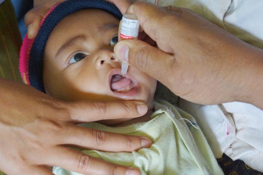 経口ポリオワクチン接種するラオスの赤ちゃん (C)JCV