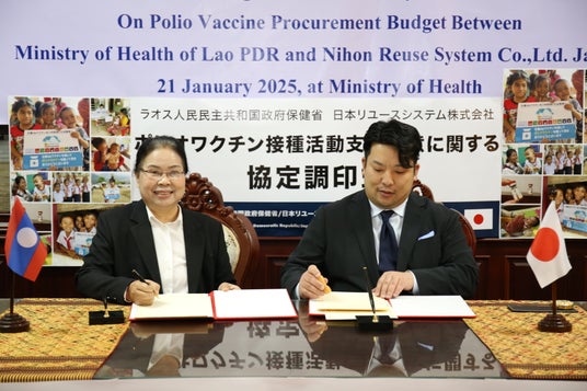 日本リユースシステム株式会社(本社:東京都港区、代表取締役:山田 正人)は、古着deワクチンを通して贈るポリオワクチンの支援先をラオス人民民主共和国 保健省へ決定、ラオス政府保健省と協定を結び調印式を実施いたしました。