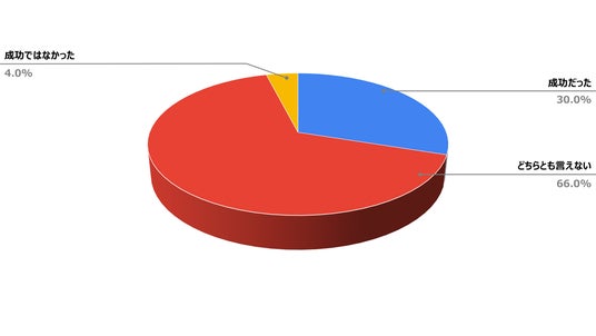 外国人採用が「成功だった」と評価した企業は30.0%にとどまり、最も多かったのは「どちらとも言えない」の66.0%でした。