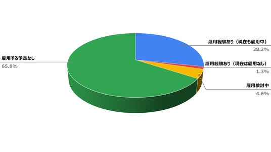 「雇用経験あり(現在も雇用中)」が28.3%、「雇用経験あり(現在は雇用なし)」が1.3%となり、