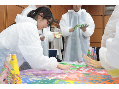 ぺんてる株式会社は2025年4月1日(火)に2025年度入社式を実施し、新入社員全員が手のひらに直接絵の具をとり、ぺんてるの未来を描く「ぺんてる体験」を実施しました。