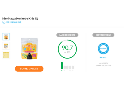 森川健康堂の子ども向けサプリメント「KIDS IQ サプリ」が、サプリメント・健康食品に特化したアメリカの第三者評価機関LabdoorにおいてA評価を取得しました。