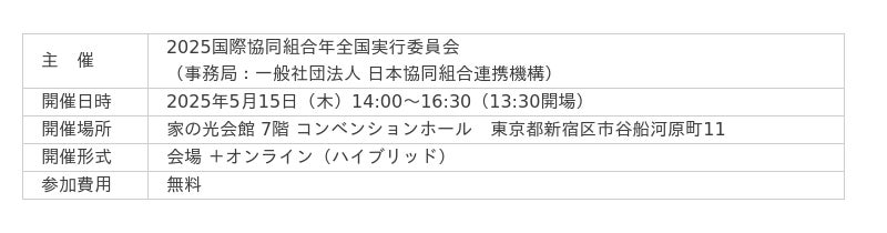 2025国際協同組合年全国実行委員会は今後、シンポジウムを以下の課題をテーマに開催予定です。
