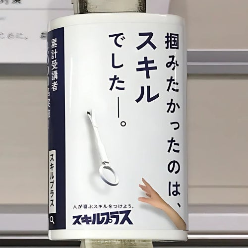 1. 都営地下鉄つり革広告:「掴みたかったのは、スキルでした。」