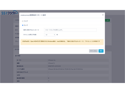従来のインベントリ情報連携に加え、SS1/SS1クラウドの管理画面からmobiconnect管理端末に対するリモートワイプ・ロックができるようになりました。