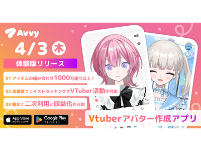 「Avvy」は、2Dイラストパーツを組み合わせてオリジナルアバターを作成し、スマートフォンのカメラで顔の動きや表情をトラッキングしてアバターを動かせる、次世代VTuberアプリです。2Dアバターを“作る”ところから“動かす”ところまで一つのアプリで完結できる点が最大の特徴となります。